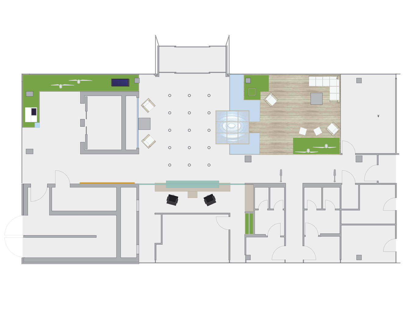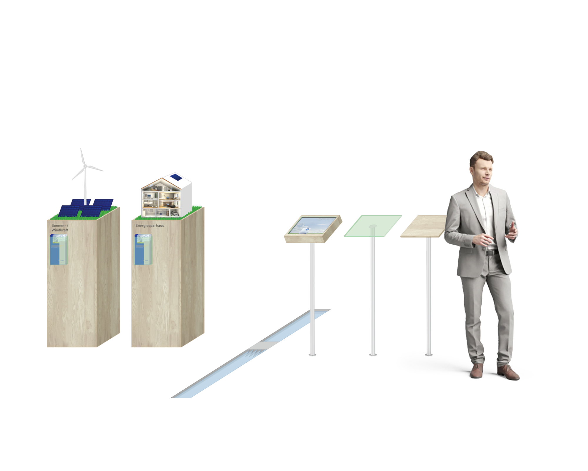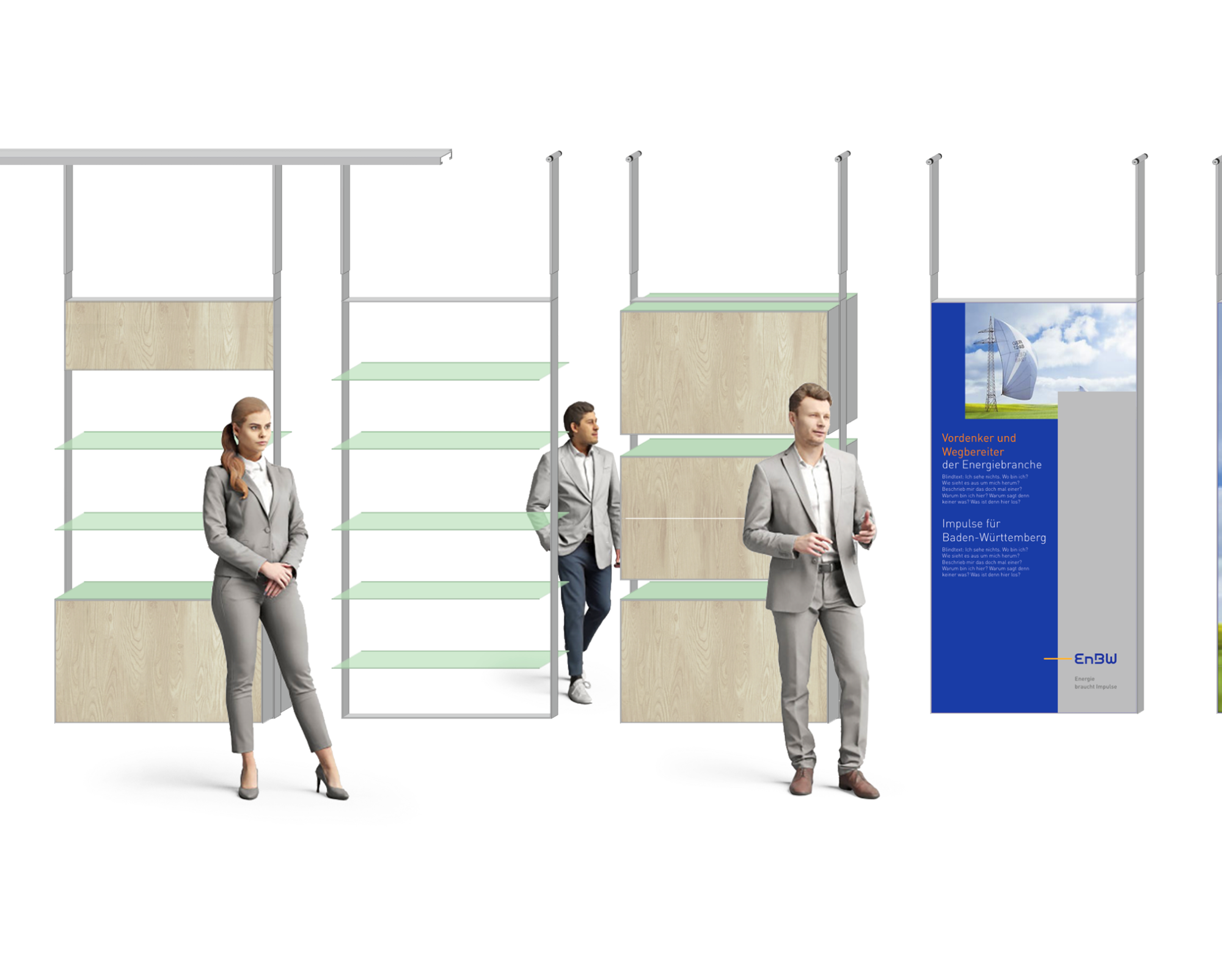 Unser Konzept für „EnBW City" - das neue EnBW-Headquarter in Stuttgart - soll Antworten auf diese Fragen geben. Zu den inhaltlichen Kernpunkten unseres Konzepts gehören die Verbindung von Technologie und Natur. Ziel des Konzepts ist ihre Inszenierung als sich synergetisch ergänzende - statt konkurrierende - Größen. Ein weiterer Schwerpunkt ist das Spiel mit den bereits raumbildend genutzten Elementen „Wasser", „Erde", „Feuer" und „Luft". Der dritte Schwerpunkt liegt in der Inszenierung des im Markenclaim verankerten Impulsgedanken. Durch die Gestaltung von Interaktions-Elementen wird EnBW City zu einer Impuls-Plattform für Ideen und Visionen rund um das Thema „Energie".